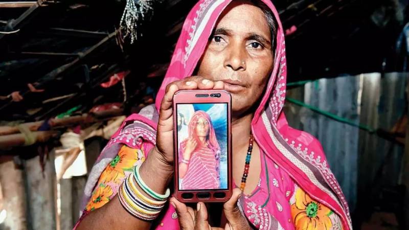 Shantadevi Nath的家人举着她生前的照片(图片来自网络)