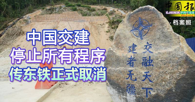 (吉隆坡23日讯)新加坡《海峡时报》报导,马来西亚政府已在昨日(周二)终止与中国交通建设股份有限公司(CCCC)的东铁合约,目前正另觅新的承包商。