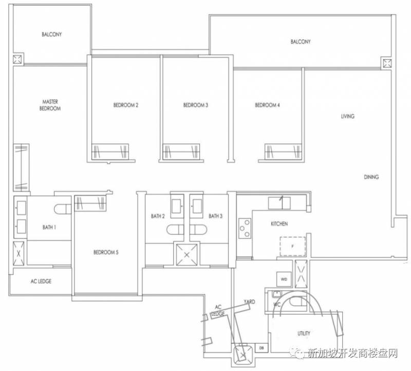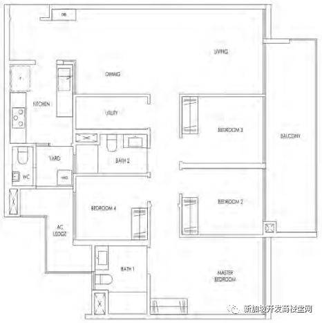 面积(平方英尺)单位数量1室4631871室+书房484442室581-6142652室高级657-6781602室+书房6783133室818-947473室高级1012-10873444室1238-12701764室高级1270-13671875室高级1668-1722110