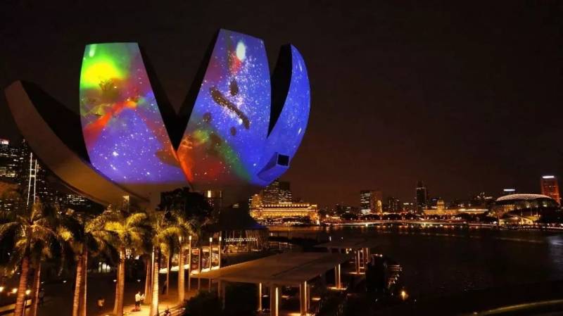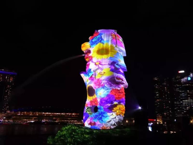平日散发着满满艺术气息的大莲花(ArtScience Museum),穿上了新衣,描画出。