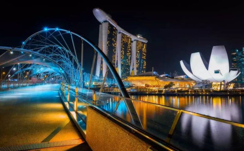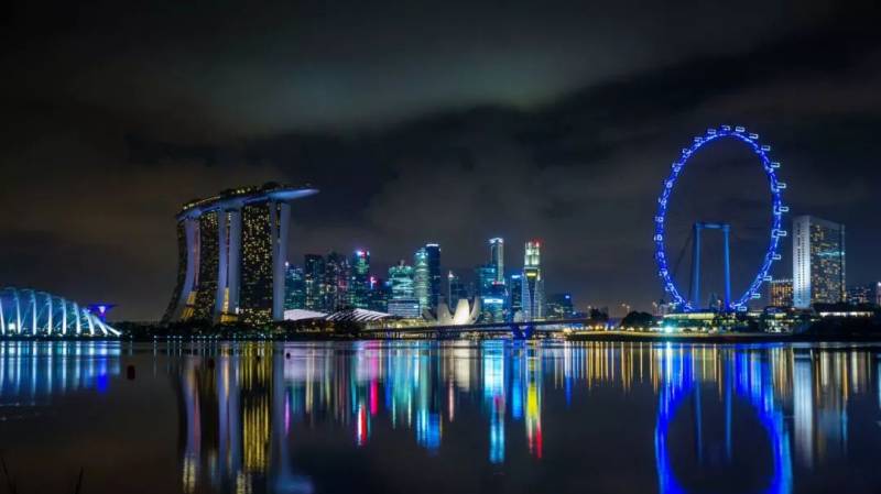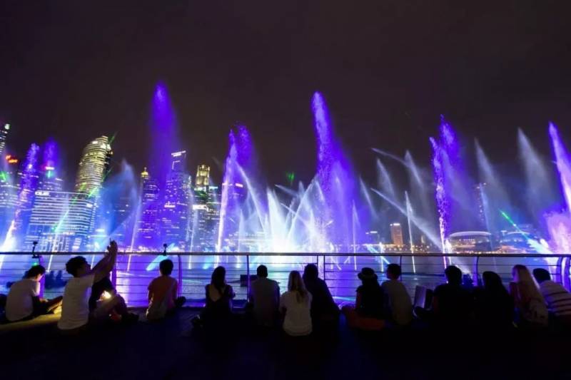 明亮的光束直插夜空,划破宁静的夜晚,建筑下的海湾水声潺潺,交相辉映,这是新加坡极尽奢华的夜色迷影。