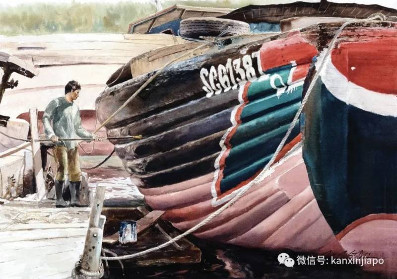 以上这些极美的水彩画作,都来自本地画家谢江泉的个展——“回忆新加坡景观”。