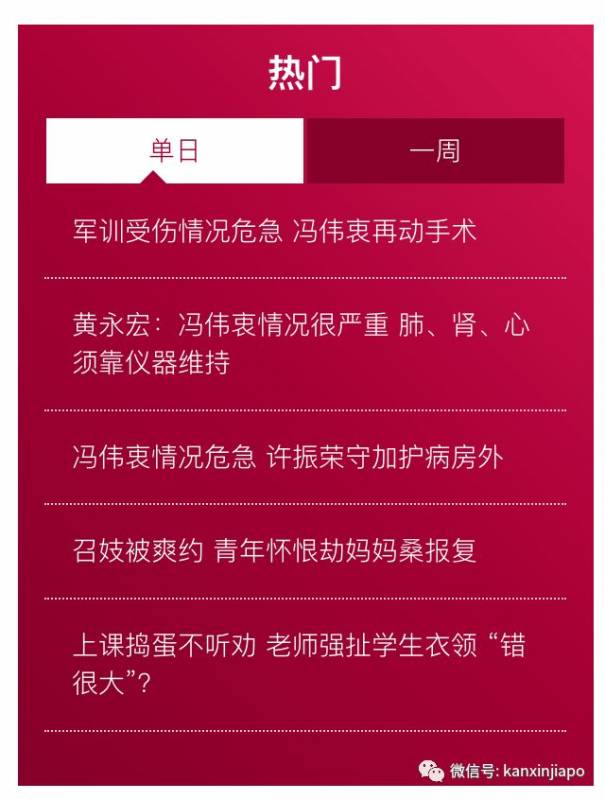 《联合早报》官网的单日热搜,前三名都是冯伟衷!!