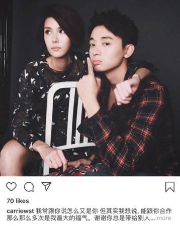 “非常喜欢这小男生。工作认真,戏又演得好,态度佳,台前幕后人都对你赞赏有加,荣少真的把你调教得很好。原以为来日方长,有机会再合作。。。”