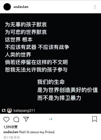 至于陈邦鋆因冯伟衷在军训重伤毙命,留言中感慨这世界不应该有武器和战争,并让为生命不是捍卫暴力。