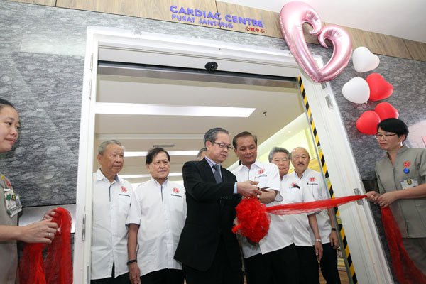 李文材(中)为同善医院心脏护理中心剪彩开幕,左4为邱财加。