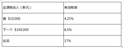 广告现行的企业所得税税率为17%,正常应纳税收入的部分免税额高达30万新元,具体如下:第1万新元的正常应纳税收入税额豁免75%,下一个29万新元正常应纳税收入税额豁免50%。因此,第一个30万新元正常应纳税收入的实际税率约为8%。超过30万元的应纳税收入按17%的现行税率全额纳税。