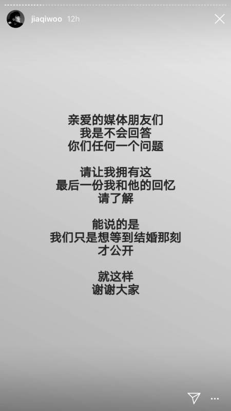 胡佳琪在自己的Instagram上面有公开表示不接受媒体访问,文字如下: