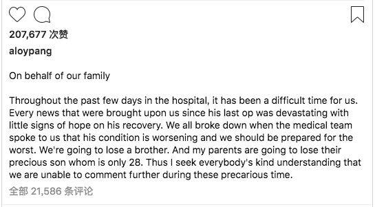 广告事实上,冯伟衷的家人也通过他的Instagram表示:希望能够得到大家的理解,暂时无法做出评论(“Thus I seek everybody's kind understanding that we are unable to comment further during these precarious time.”)。