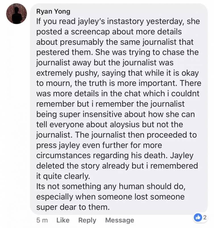 在这种哀痛的时刻,我们是不是更应该留给他的家人与爱人足够的空间呢?真相固然很重要,但一定不是建立在家人的痛苦上去获得,你觉得呢?