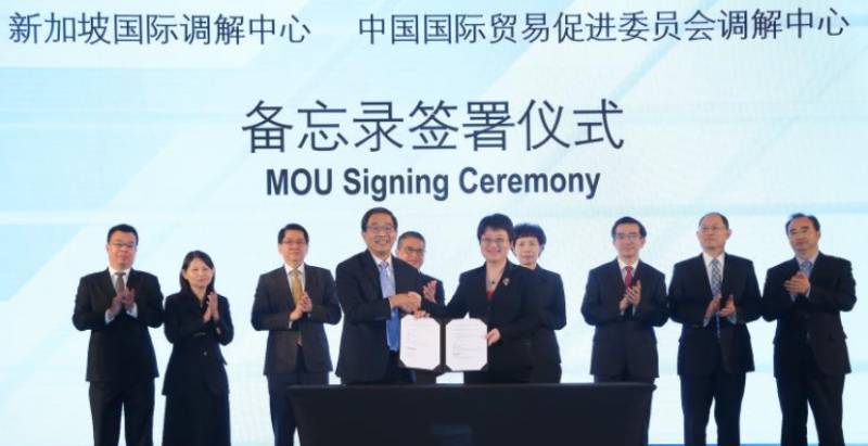 新加坡与中国进一步深化“一带一路”倡议商事争议解决的法律合作,新加坡国际调解中心与中国贸促会调解中心今早签署备忘录,