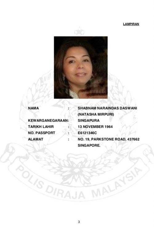 1.新加坡籍女子沙南那连达斯达斯华尼(55岁),国际护照号码是E6121346C。