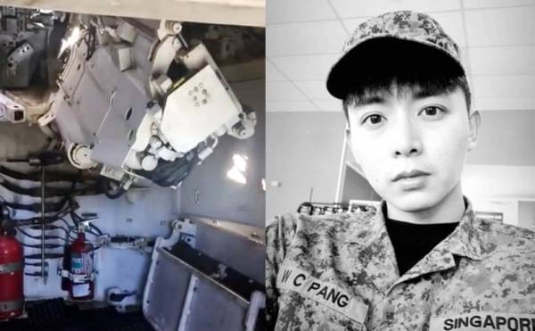 新加坡艺人冯伟衷(右)在新西兰军训时不幸重伤身亡,陆军部队初步调查显示,他是因为在炮车里没能及时闪避正在下降的炮管,结果在狭小的空间里被炮管尾端挤压胸腹,严重伤及多个器官。(国防部提供/取自网络)