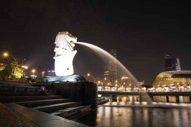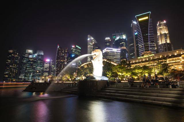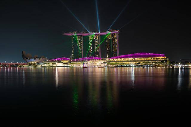 除了在高处看新加坡夜景,沿着新加坡河也能拍到不错的城市夜景。比如在鱼尾狮公园这一侧沿河区域,就能拍到远处的金沙酒店夜景。在这里拍金沙酒店晚上9点(9:00-9:15)的灯光秀也很不错。