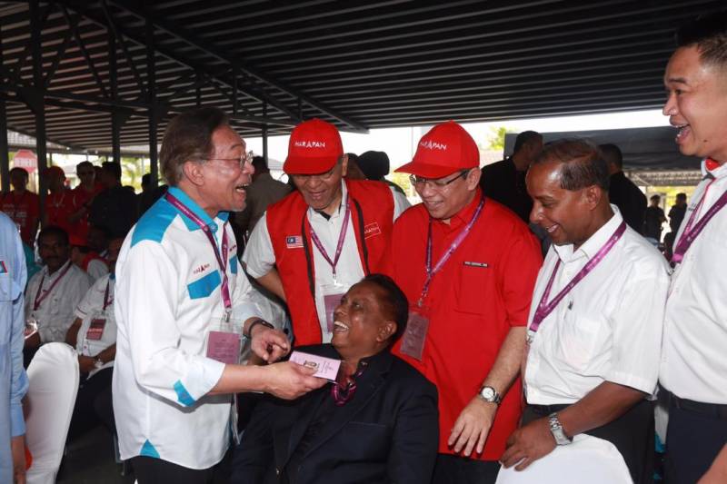8:24am 曾在509大选没有候选人证件而不获参选的希盟公正党候选人斯特兰医生,这回开心地展示其候选人准证。
