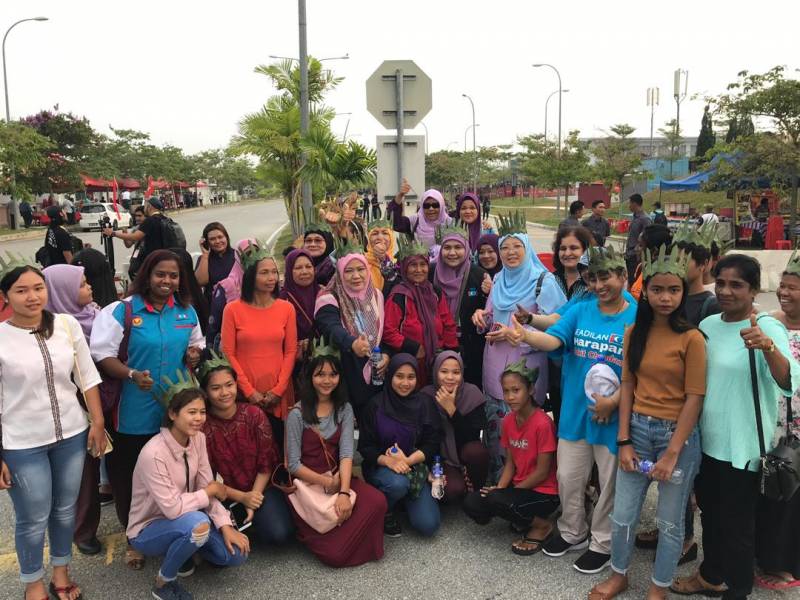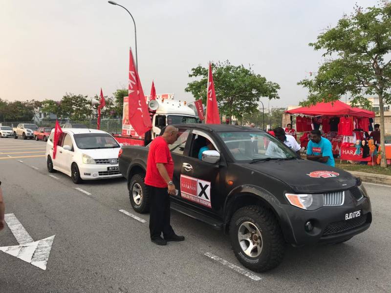8:03am 希盟支持者出动四驱车载送其他支持者到提名中心。