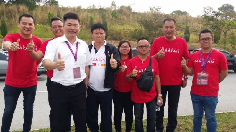 莫哈末哈山(左)取得1号竞选编号,国阵盟友纷纷竖起1号,给他加油打气!