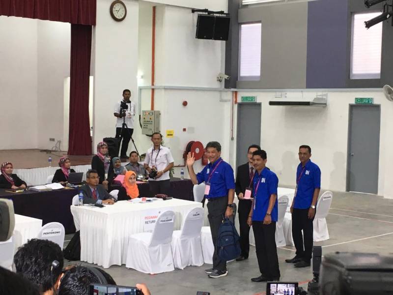 9:05am 莫哈末哈山进入提名中心,准备提交提名表格,并向现场媒体挥手。