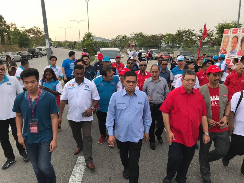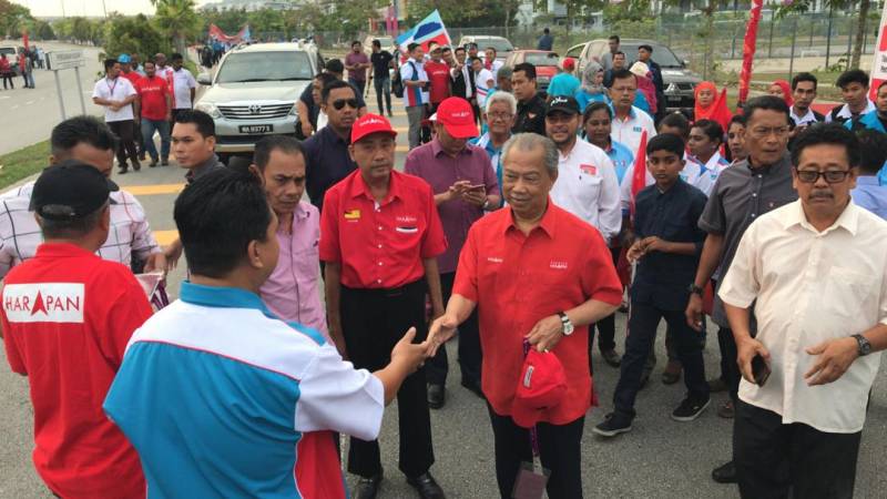 8:35am 土团党慕尤丁抵达现场,为希盟战友打气。