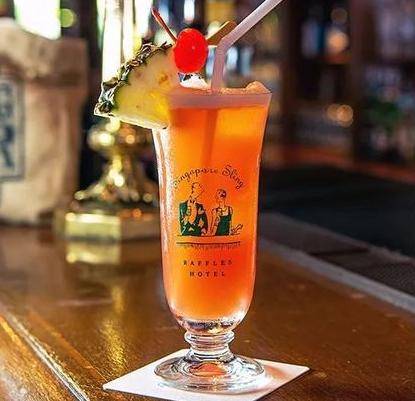 新加坡司令(Singapore Sling),新加坡最著名的鸡尾酒。它以金酒为基酒,配以柠檬汁和红石榴糖浆,酸甜可口,回味无穷~