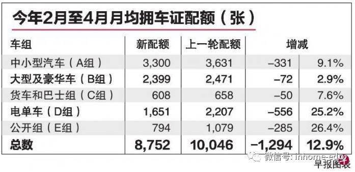 一般用于注册B组汽车的公开组(E组)拥车证则大幅度削减26.4%,每月少了285张,平均只有794张。