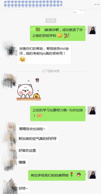 H同学:一定要好好上辅导老师的课程,真的很有针对性!特别是考前的辅导,有什么问题平时要记下来,上课时与老师沟通,课后也要多加练习习题,英文的单词量还是要靠平时的积累,我每天都会背50个单词,我觉得我现在词汇量在新加坡学习还有一点紧张,因为他们从小就是全英文学习,所以我要在课外加强词汇量