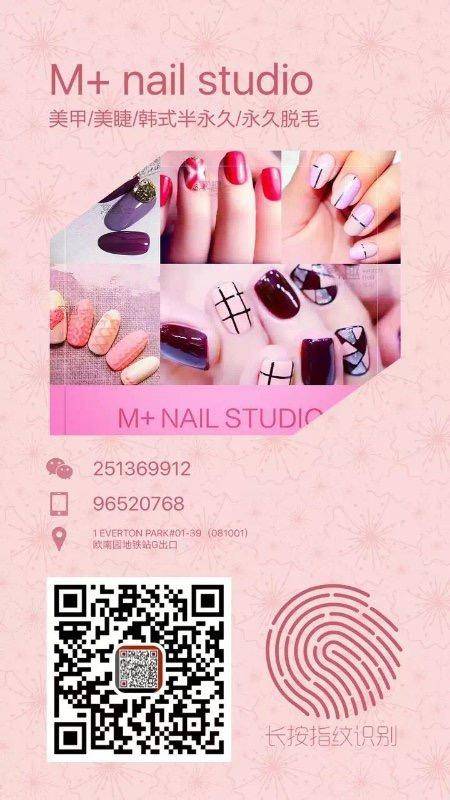 M+ NAIL STUDIO地址在 Blk1 EVERTON PARK#01-39(081001)M+ NAIL STUDIO欧南园紫色线G出口,交通便利,店内装修精美,店员热情专业。