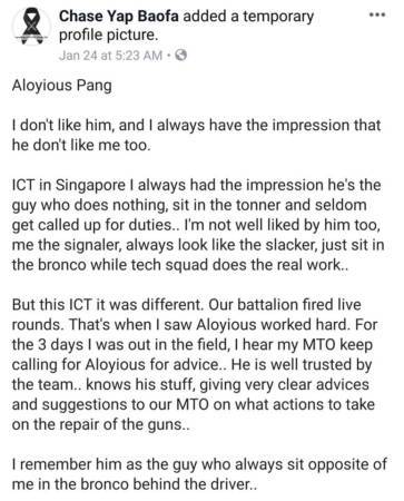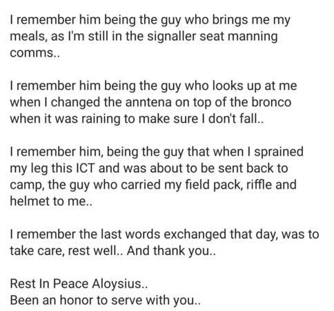 这一篇贴文感动了很多人,也在网上不断被转发,叶宝发最后说:“很荣幸可以跟你一起受训,请你安息。”