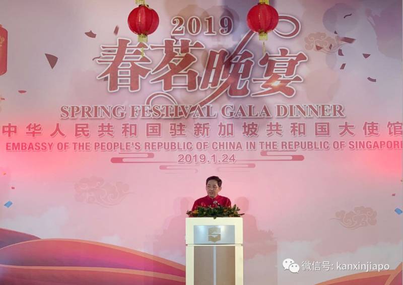 中国驻新加坡大使洪小勇先生也发表了演讲,祝到场的来宾们春节快乐,也祝愿中国和新加坡友谊长存。