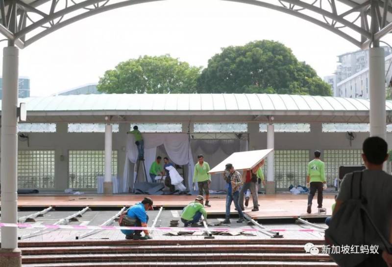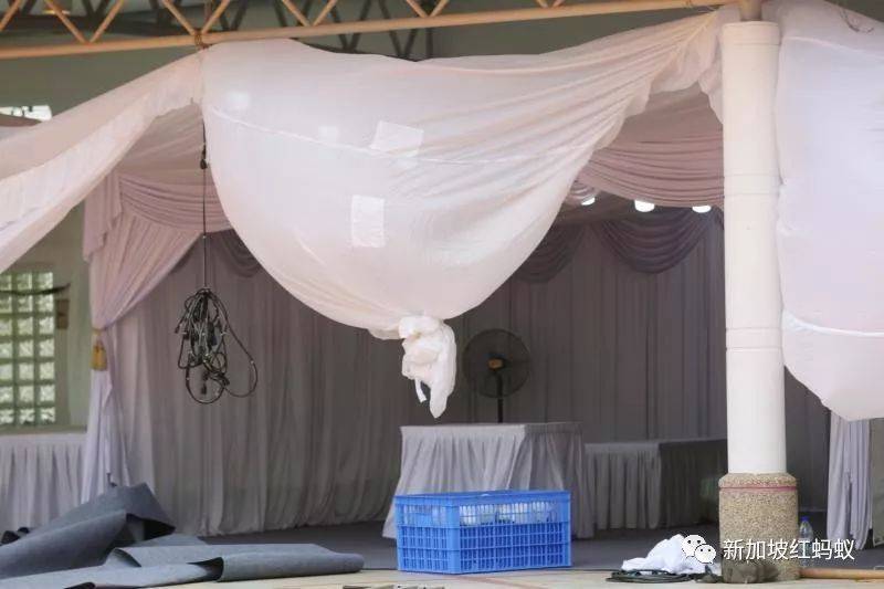 工作人员如火如荼搭建冯伟衷的灵堂。(新明日报)