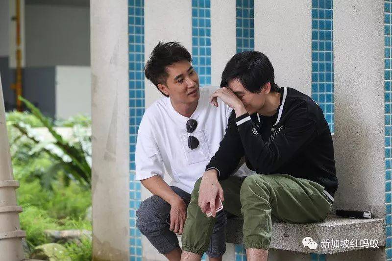冯伟衷的哥哥冯伟哲(右)出发到新西兰前心情焦虑,许振荣在一旁安慰他。(联合晚报)