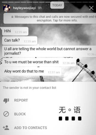 胡佳嬑公开和记者的谈话内容。/图:Instagram/hayleywoojiayi