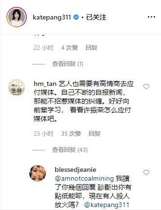 庞蕾欣在IG发言,有网民力挺,有网民不认同。