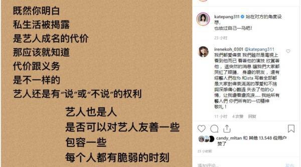 庞蕾欣也写道:“艺人还是有‘说’或‘不说’的权利”。