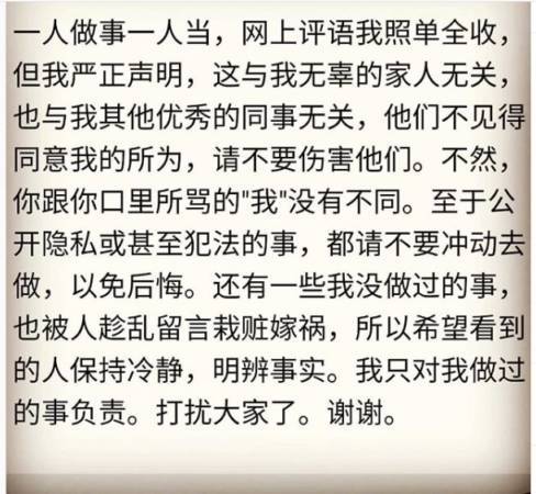 广告他也表示“一人做事一人当”,会接受所有网上的评论,但强调这与他的家人和同事无关,他也只对他做过的事负责。