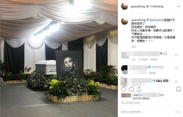 谢静仪:Aloyyy~ 你回家了,回到了家人和爱的人的身边,在一个我们常聚在一起的地方,现在的感觉依然好不真实。我希望你听到了我要跟你说的话。不要担心我们,好好休息。我们所有人都很爱你。