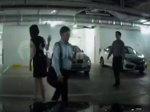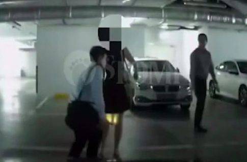新加坡一名身穿衬衫的男子用手机在泊车场偷拍女乘客裙底,本以为没人都发现罪行,就大肆的做猥琐的犯罪行为?