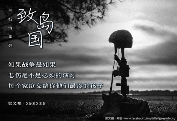 冯伟衷军训意外牵动天下父母心,新加坡知名诗人、音乐教父梁文福(54岁,学而优语文中心语文总监,南洋理工大学中文系兼任教授)有感而发,昨午1时左右在面子书写了题为《致岛国》的三行诗。