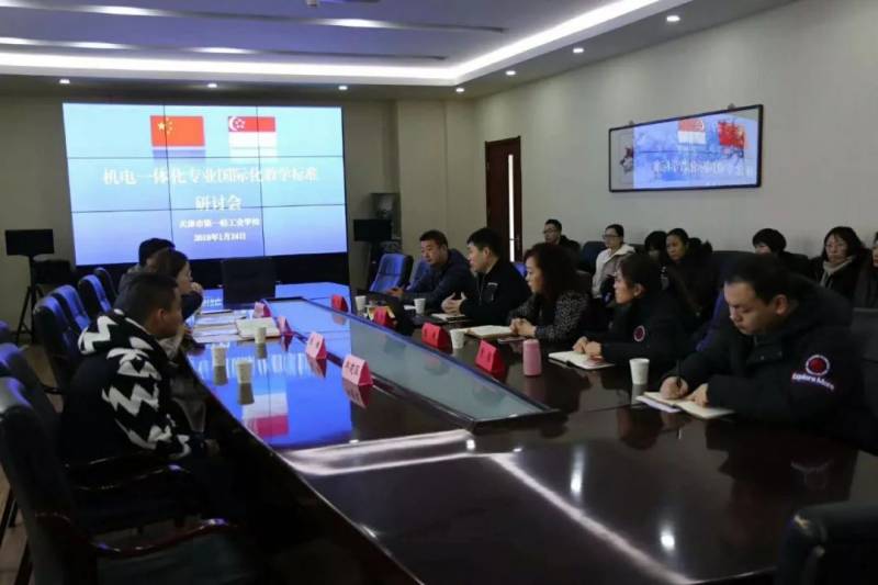 2019年1月24日, 新加坡工艺教育局咨询服务机构(ITEES)东亚区域专员Alicia Lee女士及新加坡工艺教育局中区学院机械电子工程部主任彭佳伟先生两位专家组成的调研团赴天津市第一轻工业学校调研。调研期间,专家与学校各级领导、现代制造技术教学部专业教师进行了座谈,对教学设备进行现场调研,对教学人员进行评估。