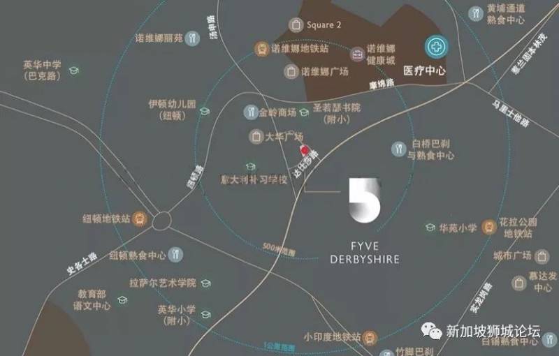 Fyve Derbyshire所处的诺维娜地区正在迅速发展为新加坡的医疗服务重镇。这一带医疗机构群集,有陈笃生医院、诺维娜医务中心、国家皮肤健康、国家医疗保健集团总部、即将重建的传染病中心以及百汇控股的“未来医院”等。这里堪称世界级医疗中心、健康守护圣地。