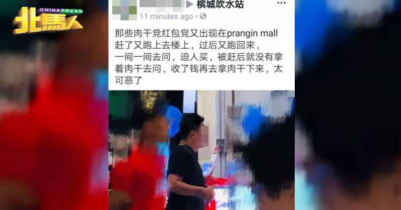 (槟城27日讯)红包党在新光大广场出没,强迫商家购买贵价肉干!