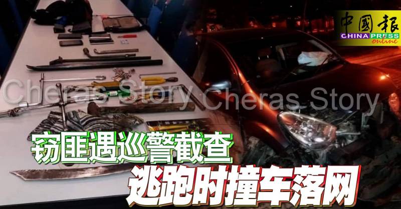 警方当场逮捕3名嫌犯后,起获一些刀械和破门行窃的工具和手套,并查知他们所驾驶的轿车为报失车。