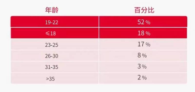 根据白皮书数据显示:中国大陆19-22岁的雅思考生依旧占主流,18岁以下的雅思考生已经超过23-25岁的考生成为第二大年龄群体。