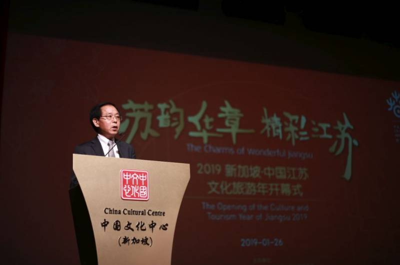 1月26日,中国文化中心携手中国江苏省文化和旅游厅、新加坡江苏会共同举办的“苏韵华章 精彩江苏——2019新加坡· 江苏文化旅游年开幕式”在中国文化中心圆满举办。在春节来临之际,美轮美奂的江苏画卷、余音绕梁的器乐演奏、精彩纷呈的歌舞杂技,伴随两国各界嘉宾共度了一个美好的夜晚。