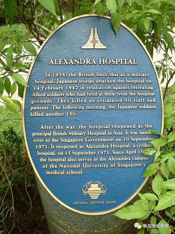 亚历山大医院成立于1938年,前身为新加坡英军医院。日军在第二次世界大战期间曾经闯入医院展开大屠杀,杀死了200名医护人员,就连病床上的病人也不放过。