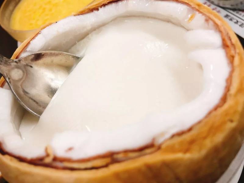 个人更爱这个椰子冻,在椰子壳里做成的椰奶冻,不甜腻,冰冰凉凉,好适合夏天啊!