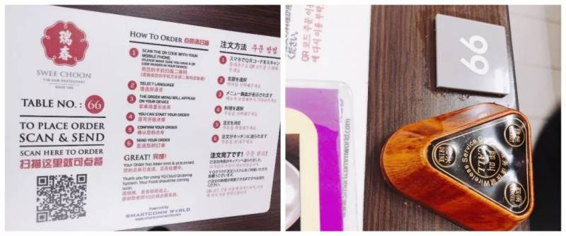 为了照顾来自世界各地的游客,每个桌上都贴著点菜指南,列4种语言,包括日语和韩语。而且,只需按桌上按钮就可以呼唤服务员了。