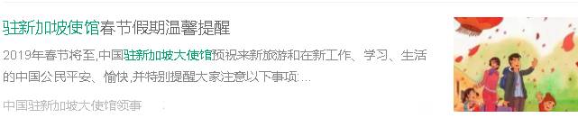2019年春节将至,中国驻新加坡大使馆预祝来新旅游和在新工作、学习、生活的中国公民平安、愉快,并特别提醒大家注意以下事项: