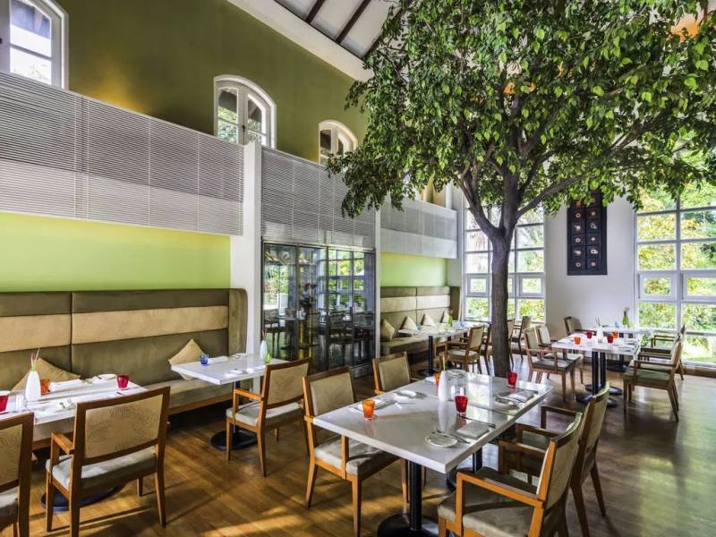 最让人难忘的是一棵大树穿过餐厅内部静静生长