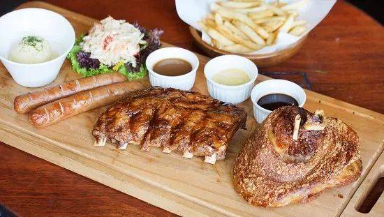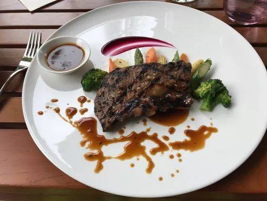 主食中鲈鱼、菲力牛排、三文鱼、烩饭
